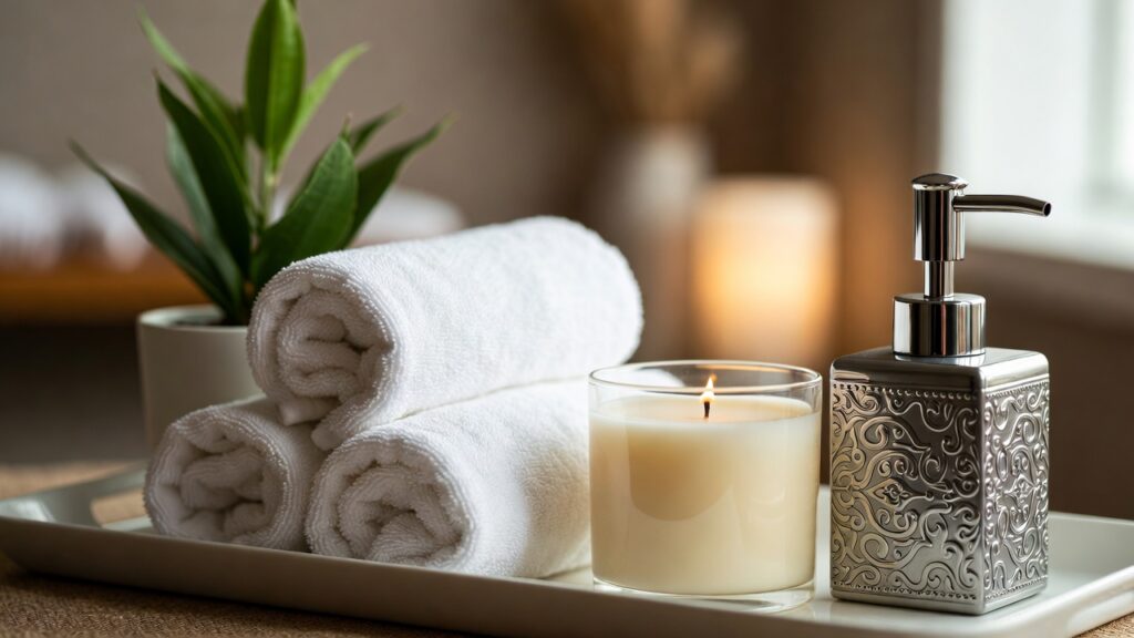 You can’t go wrong with the spa look. Grab a tray and toss on: