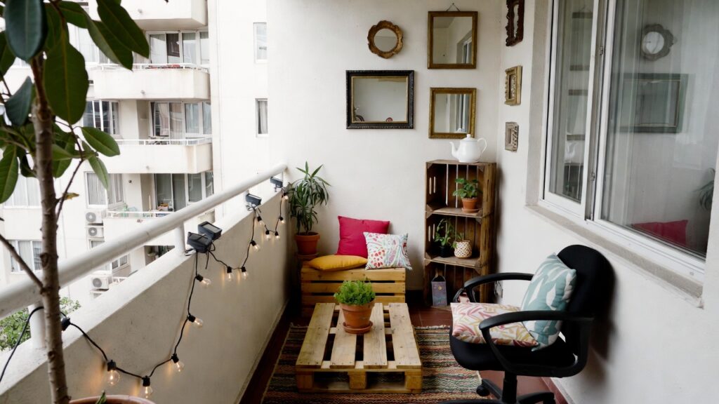 How can I decorate a small apartment balcony on a budget?